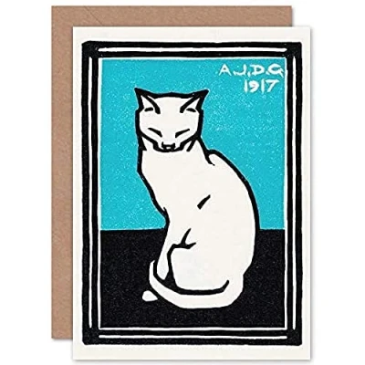 Wee Blue Coo Sitting Cat Julie de Graag Greeting Card With Envelope Inside Premium Quality