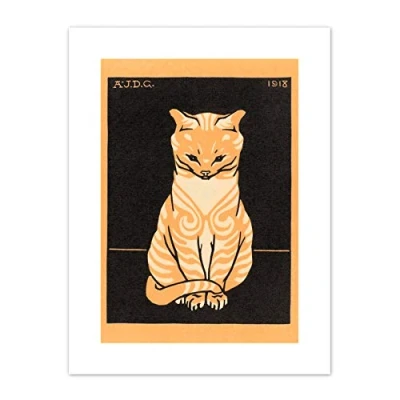 Wee Blue Coo Sitting Tabby Cat Julie De Graag Art Print Canvas Premium Wall Decor Poster