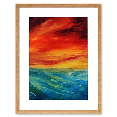 Wee Blue Coo Sky Seascape Sunset Waves Red Artwork Framed Wall Art Print 12X16 Inch