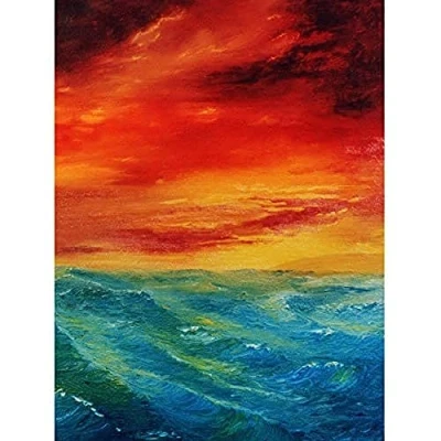 Wee Blue Coo Sky Seascape Sunset Waves Red Unframed Art Print Poster Wall Decor 12X16 Inch