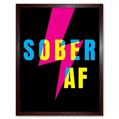 Wee Blue Coo Sober AF Lightning Bolt Typography Art Print Framed Poster Wall Decor 12x16 inch
