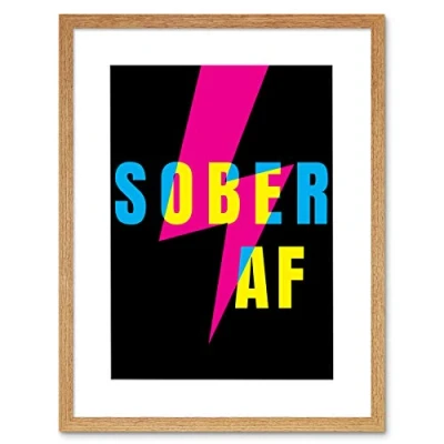 Wee Blue Coo Sober Af Lightning Bolt Typography Artwork Framed Wall Art Print 12X16 Inch