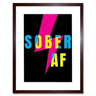 Wee Blue Coo Sober Af Lightning Bolt Typography Artwork Framed Wall Art Print 12X16 Inch