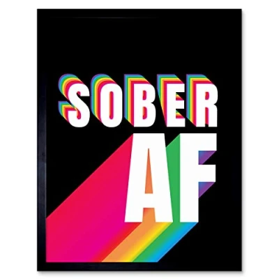 Wee Blue Coo Sober AF Rainbow Typography Black Art Print Framed Poster Wall Decor 12x16 inch