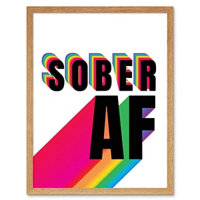 Wee Blue Coo Sober AF Rainbow Typography White Art Print Framed Poster Wall Decor 12x16 inch