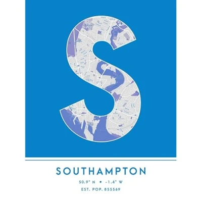 Wee Blue Coo Southampton England United Kingdom City Map Colour Block Modern Typography Stylish Letter Unframed Word Wall Art Print Poster for Home Décor CITYMAP1