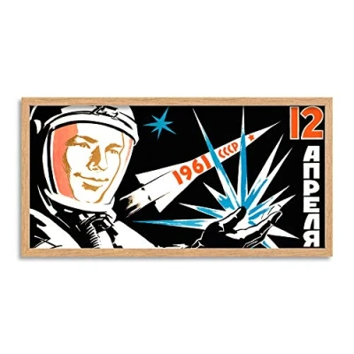 Wee Blue Coo Soviet Cosmonaut Yuri Gagarin Space Long Panel Framed Wall Art Print