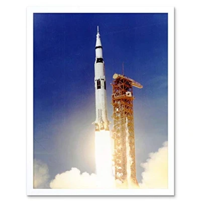 Wee Blue Coo Space Apollo 11 Launch Saturn V Rocket Blast Thrust Flame USA Art Print Framed Poster Wall Decor 12X16 Inch