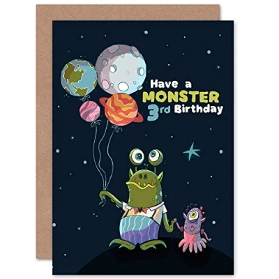 Wee Blue Coo Space Balloon Monster Birthday 3rd Greetings Card