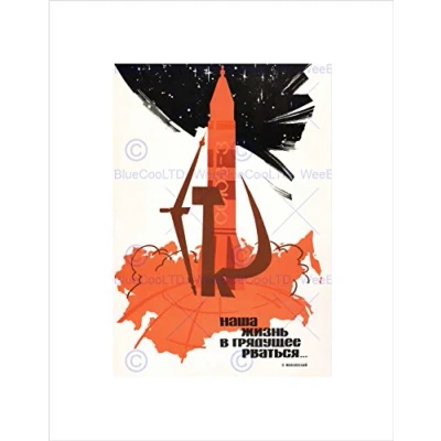 Wee Blue Coo SPACE CULTURAL COSMONAUT ROCKET LAUNCH USSR BLACK FRAMED ART PRINT B12X4665