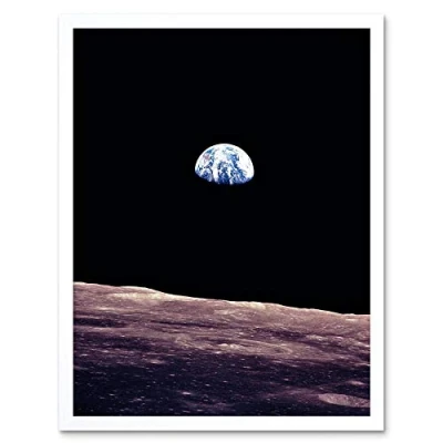 Wee Blue Coo Space Photo Planet Earth Lunar Surface Moon Landscape USA Art Print Framed Poster Wall Decor 12X16 Inch