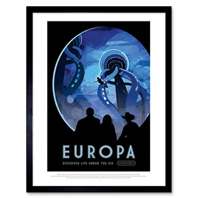 Wee Blue Coo Space Tourism Science Travel Europa Ice Moon Jupiter Art Print Framed Poster Wall Decor 12X16 Inch