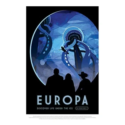 Wee Blue Coo Space Tourism Science Travel Europa Ice Moon Jupiter Art Print Poster Wall Decor 12X16 Inch