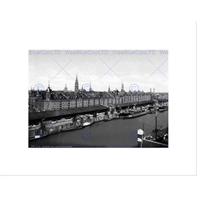 Wee Blue Coo SPEICHERSTADT HAMBURG GERMANY 1895 OLD BW BLACK FRAMED ART PRINT PICTURE B12X942