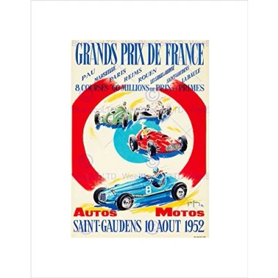 Wee Blue Coo SPORT ADVERT GRAND PRIX MOTOR FRANCE RACING CAR FRAMED ART PRINT B12X7256