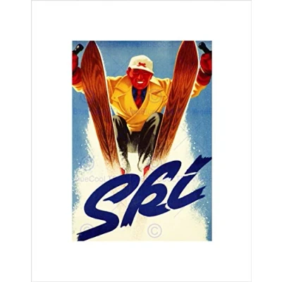 Wee Blue Coo SPORT ADVERT WINTER SKI SNOW DOWNHILL SLALOM BLACK FRAMED ART PRINT B12X6330