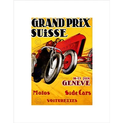 Wee Blue Coo SPORT MOTORCYCLE SIDECAR GENEVA SWITZERLAND VINTAGE FRAMED ART PRINT B12X2827