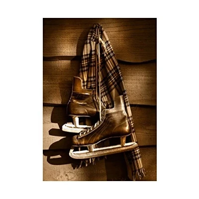 Wee Blue Coo Sport Photo Vintage Old Ice Hockey Skates Sepia Wall Art Print