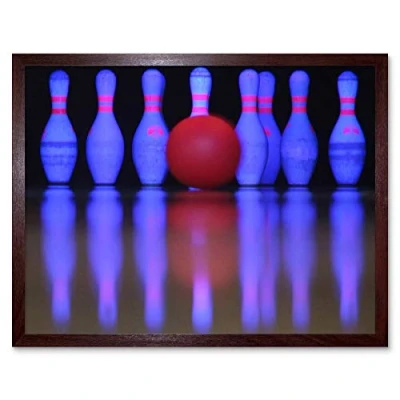 Wee Blue Coo Sport Ten Pin Bowling Neon Skittles Ball Art Print Framed Poster Wall Decor 12X16 Inch