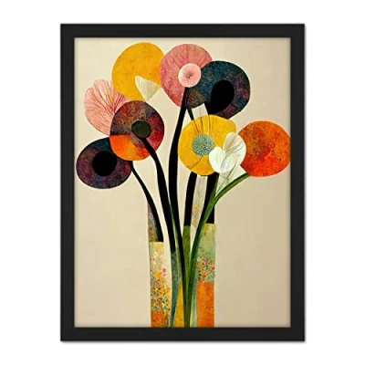 Wee Blue Coo Spring Flowers Floral Bouquet Abstract Vase Boho Artwork Framed Wall Art Print 18X24 Inch