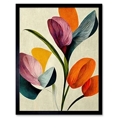 Wee Blue Coo Spring Flowers Floral Bouquet Bold Abstract Boho Coral Mustard Art Print Framed Poster Wall Decor 12x16 inch