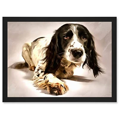 Wee Blue Coo Springer Spaniel Cute Dog Artwork Framed Wall Art Print A4