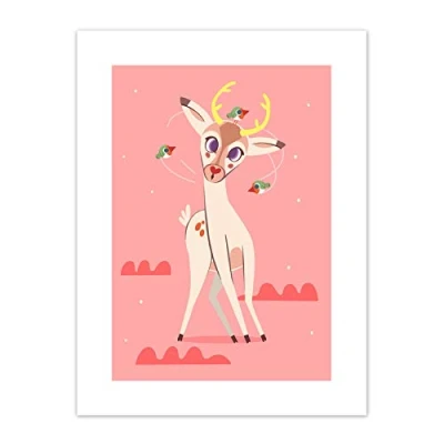 Wee Blue Coo Stag Dazed with Birds Art Print Canvas Premium Wall Decor Poster