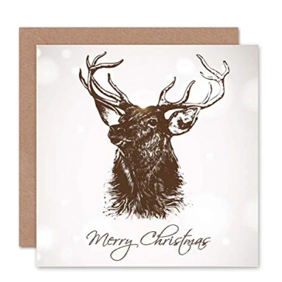 Wee Blue Coo STAG MERRY CHRISTMAS BLANK GREETINGS BIRTHDAY CARD ART