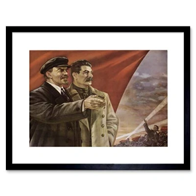 Wee Blue Coo STALIN LENIN COMMUNISM RED FLAG SOVIET USSR OCTOBER FRAMED ART PRINT B12X4615