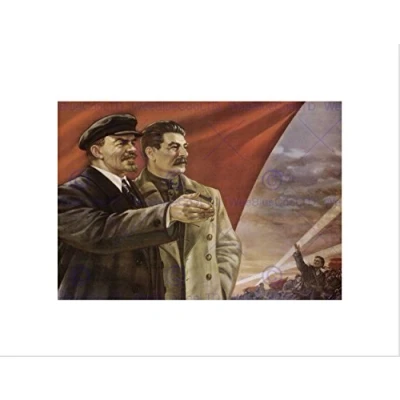 Wee Blue Coo STALIN LENIN COMMUNISM RED FLAG SOVIET USSR OCTOBER FRAMED ART PRINT B12X4615