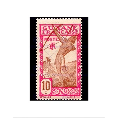Wee Blue Coo Stamp French Guyana 10 Ten Cents Native Bowman Archer Arrow Art Wall Print
