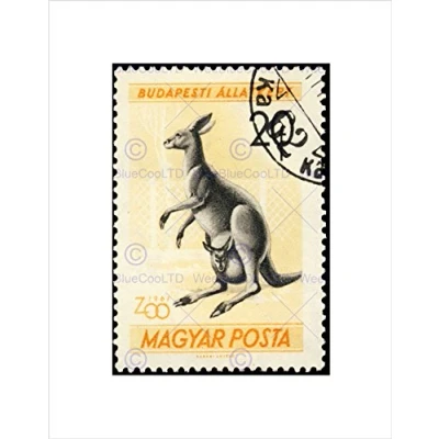 Wee Blue Coo STAMP HUNGARY 20 FORINT KANGAROO JOEY ZOO BUDAPEST FRAMED ART PRINT B12X11036