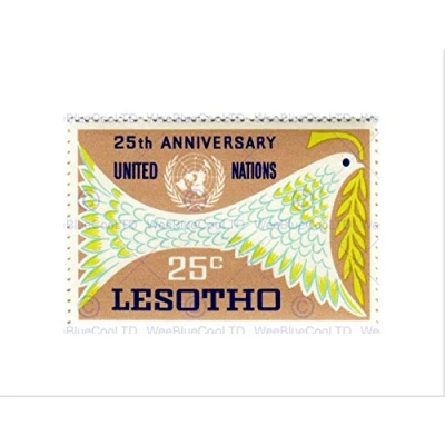 Wee Blue Coo STAMP LESOTHO 25 CENTS RAND UNITED NATIONS PEACE DOVE FRAMED PRINT B12X12292