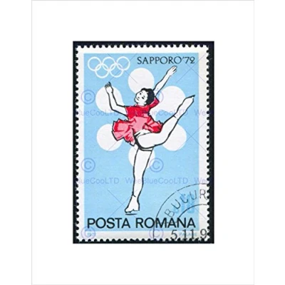 Wee Blue Coo STAMP ROMANIA 10 BANI ICE SKATING 1972 OLYMPICS JAPAN FRAMED PRINT B12X8177