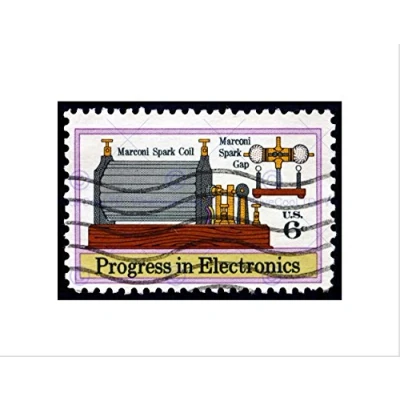 Wee Blue Coo STAMP UNITED STATES 6 CENTS MARCONI SPARK COIL PROGRESS FRAMED PRINT B12X8475