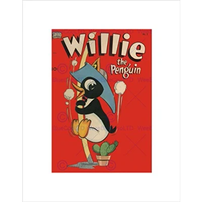 Wee Blue Coo STANDARD RETRO COMIC BOOK COVER WILLIE PENGUIN BLACK FRAMED ART PRINT B12X4901