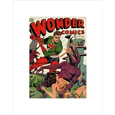 Wee Blue Coo STANDARD RETRO COMIC BOOK COVER WONDER ALIEN FIGHT FRAMED ART PRINT B12X4902