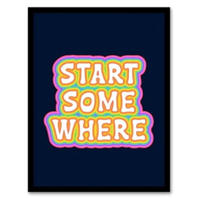 Wee Blue Coo Start Somewhere Quote Affirmation Bold Colourful Artwork Framed Wall Art Print A4