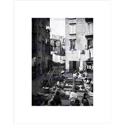 Wee Blue Coo Street Laundry Naples Italy 1895 Vintage Old BW Wall Art Print