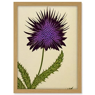 Wee Blue Coo Stylized Modern Purple Scottish Thistle Flower Illustration Artwork Framed A3 Wall Art Print