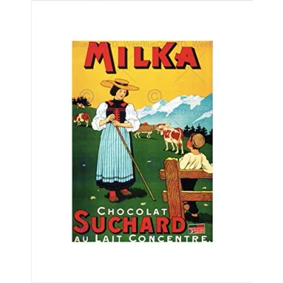 Wee Blue Coo SUCHARD CHOCOLATE ALPINE PASTORAL SWITZERLAND VINTAGE ADVERT ART PRINT B12X520