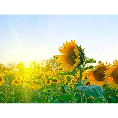 Wee Blue Coo Sunflowers Field Yellow Green Art Print Poster Wall Decor 12X16 Inch