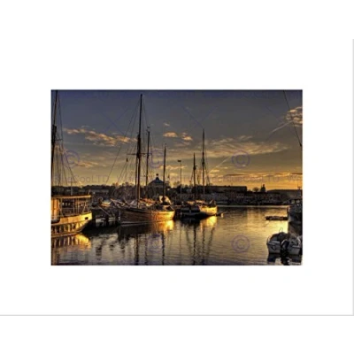 Wee Blue Coo SUNSET BOATS MARINA HARBOUR SEASCAPE BLACK FRAMED ART PRINT PICTURE B12X9178