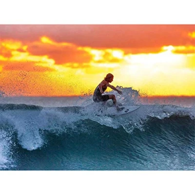 Wee Blue Coo Sunset Surfer Waves Art Print Poster Wall Decor 12X16 Inch