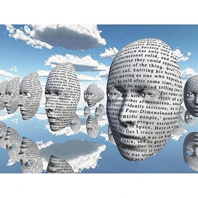 Wee Blue Coo Surreal Faces Masks Text Sky Art Print Poster Wall Decor 12X16 Inch