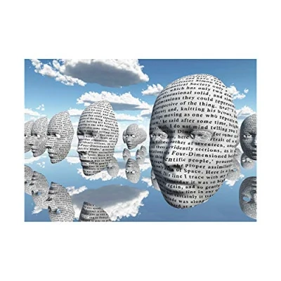 Wee Blue Coo Surreal Faces Masks Text Sky Photo Wall Art Print