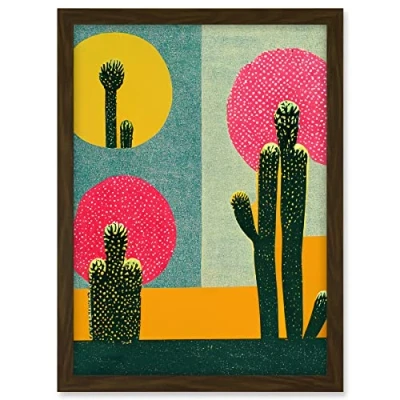 Wee Blue Coo Surreal Pop Art Cholla Desert Cactus Artwork Framed A3 Wall Print