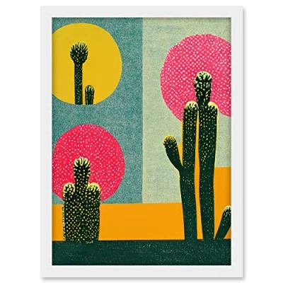 Wee Blue Coo Surreal Pop Art Cholla Desert Cactus Artwork Framed A3 Wall Print