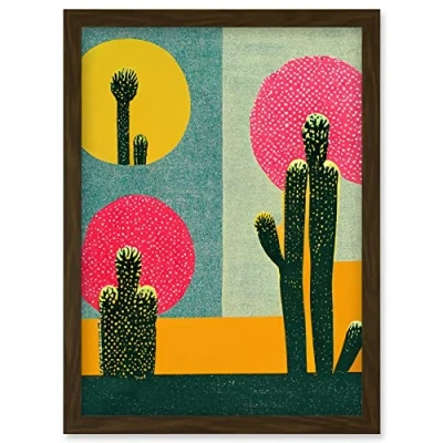 Wee Blue Coo Surreal Pop Art Cholla Desert Cactus Artwork Framed Wall Print A4
