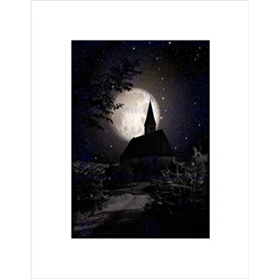 Wee Blue Coo Surrealism Landscape Moon Church Spooky Halloween Wall Art Print